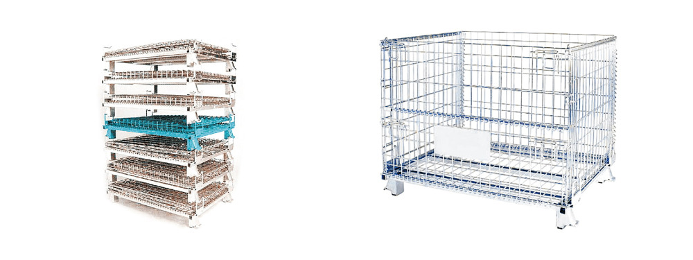 Kotak-kotak ini hadir dalam desain tetap dan dapat dilipat, serta dapat ditumpuk secara vertikal untuk mengoptimalkan ruang. Beberapa model dilengkapi gerbang jatuh untuk memudahkan akses, roda untuk mobilitas, atau lapisan galvanis untuk ketahanan terhadap korosi.