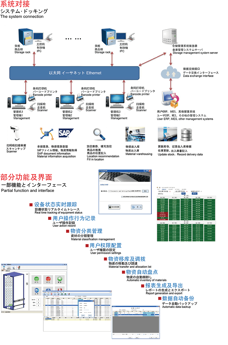 Inti dari solusi ini adalah sistem manajemen gudang (WMS) yang matang dan mandiri yang dikembangkan secara independen. Sistem canggih ini tidak hanya kuat dalam mengelola kompleksitas gudang modern tetapi juga fleksibel. Ini dapat disesuaikan dan diskalakan sesuai dengan persyaratan spesifik klien, memastikan itu mendukung operasi kecil dan perusahaan skala besar. WMS terintegrasi mulus dengan sistem bisnis lain seperti ERP, MES, dan SAP, menawarkan bisnis platform terpadu untuk mengelola operasi mereka.