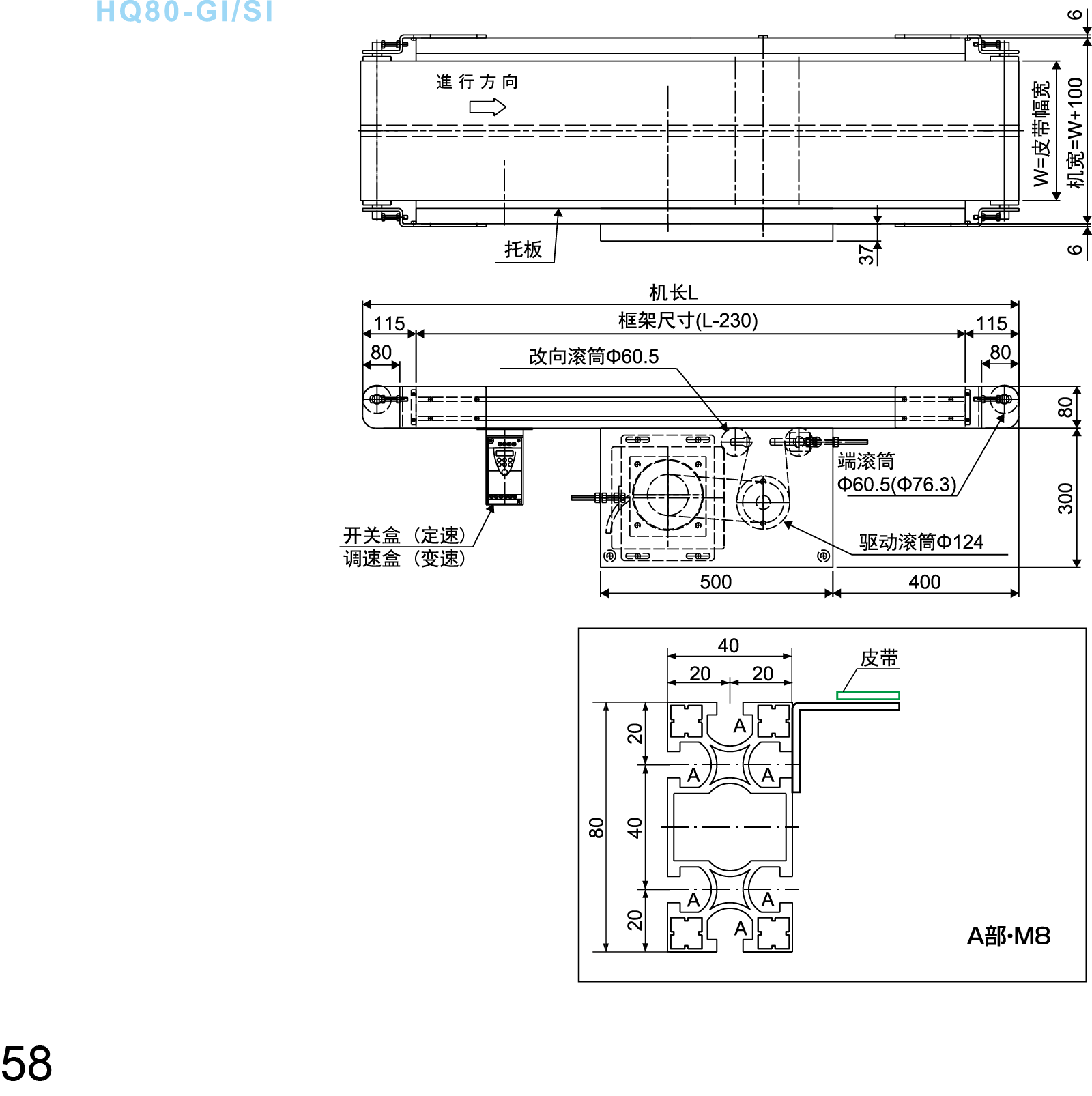 ● Ini adalah jenis standar konveyor sabuk 34mm, pusat mengemudi dipindahkan oleh timing belt.