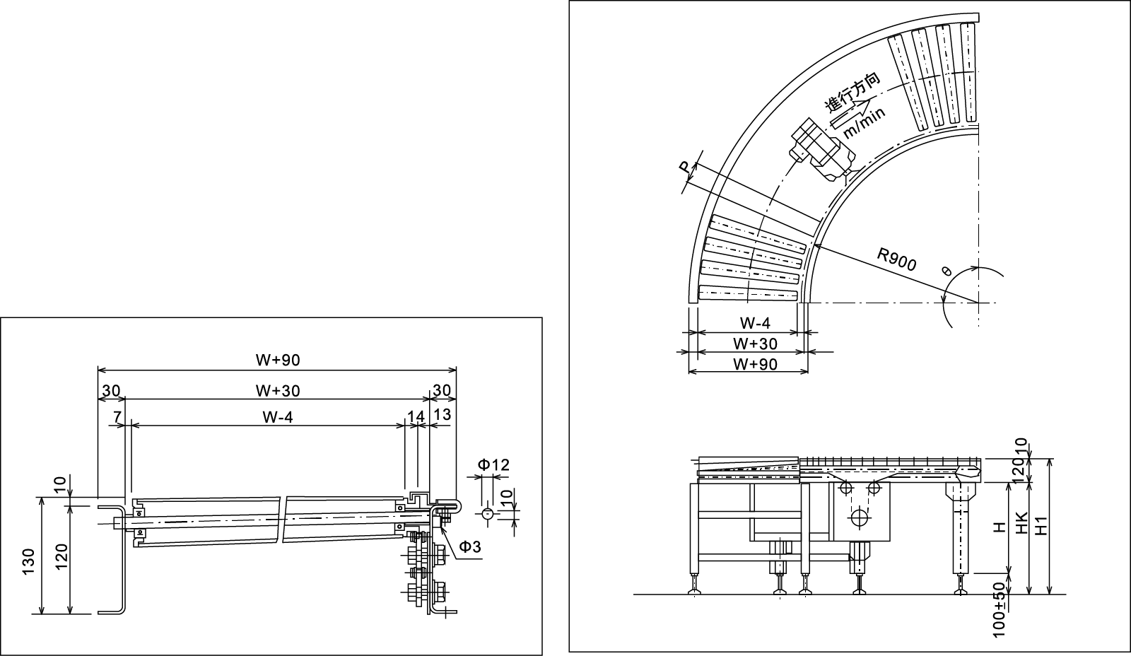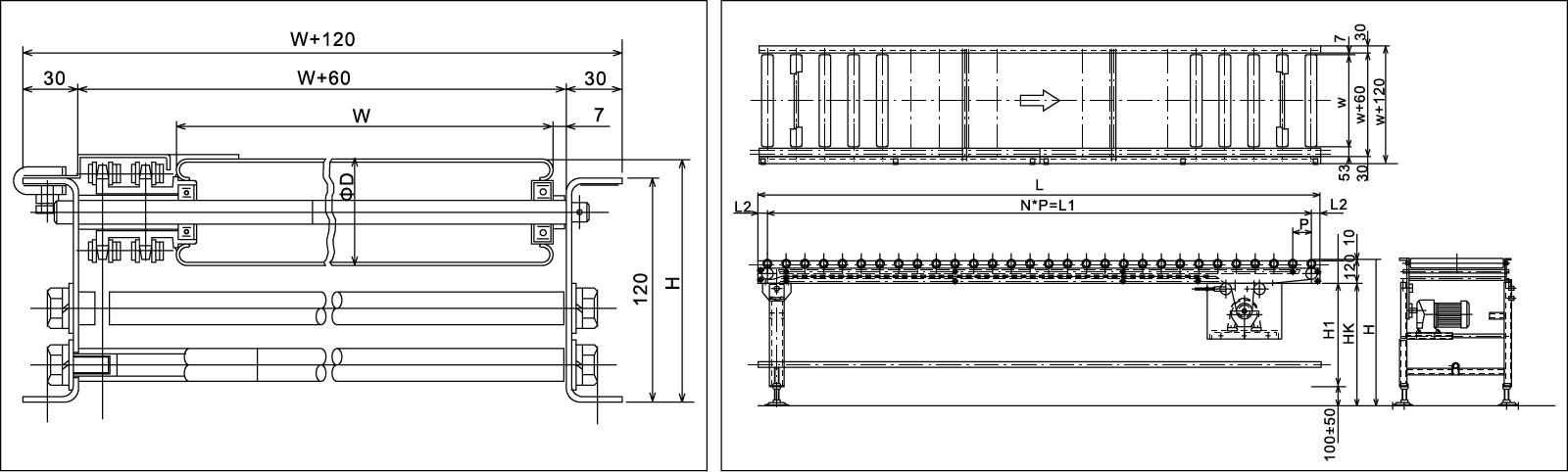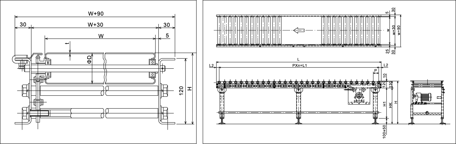 | Pitch roller | P (mm) | 75 · 100 · 150 | 75 · 100 · 150 | 75 · 100 · 150 | 100 · 150 | 100 · 150 |