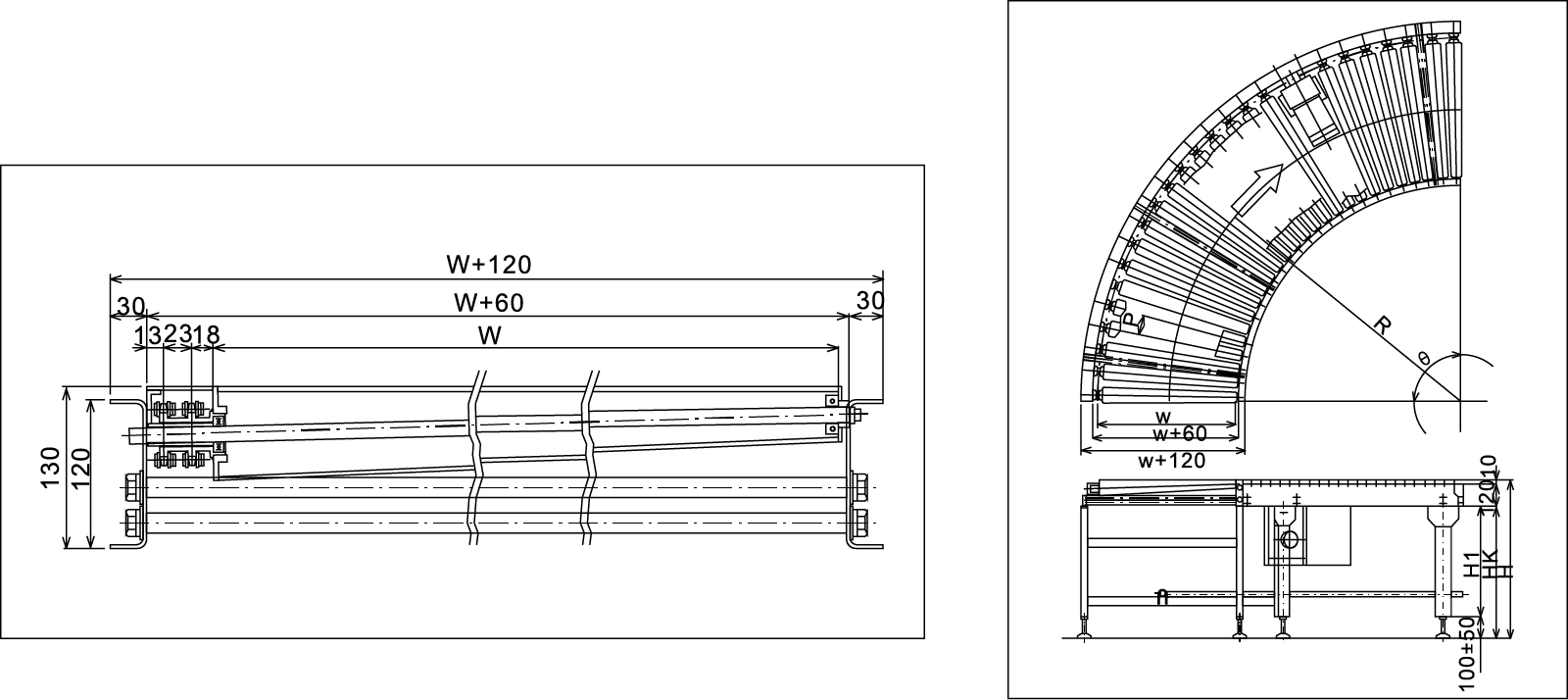 Konveyor roller yang digerakkan oleh rantai adalah konveyor roller bertenaga umum. Ini dibagi menjadi tipe sproket tunggal dan ganda berdasarkan konfigurasi rantai. Konveyor rantai tunggal cocok untuk rol yang padat, sedangkan konveyor rantai ganda banyak digunakan dan diorganisir menurut pitch rantai.