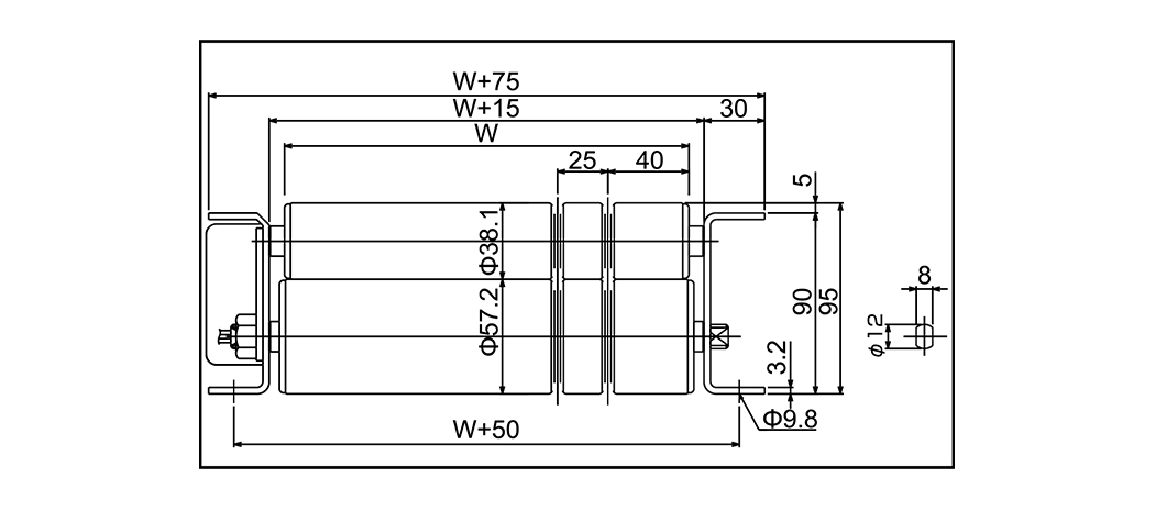| Roller bantu Diameter x ketebalan x poros | 57.2 × 2.1 × 12 (60.5x2.3x12) (Galvanisasi) |
